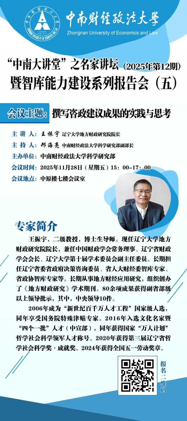 【活动预告】“中南大讲堂”之名家讲坛(2025年第12期)暨智库能力建设系列报告会(五)