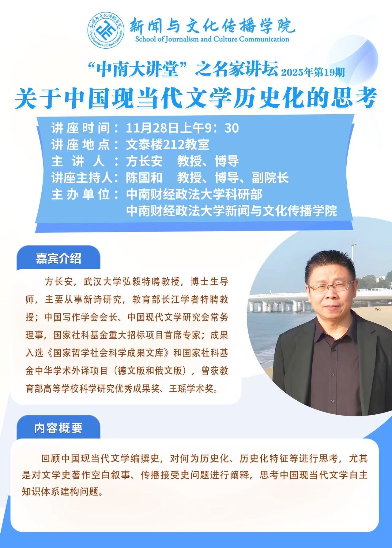 【活动预告】“中南大讲堂”之名家讲坛(2025年第19期)