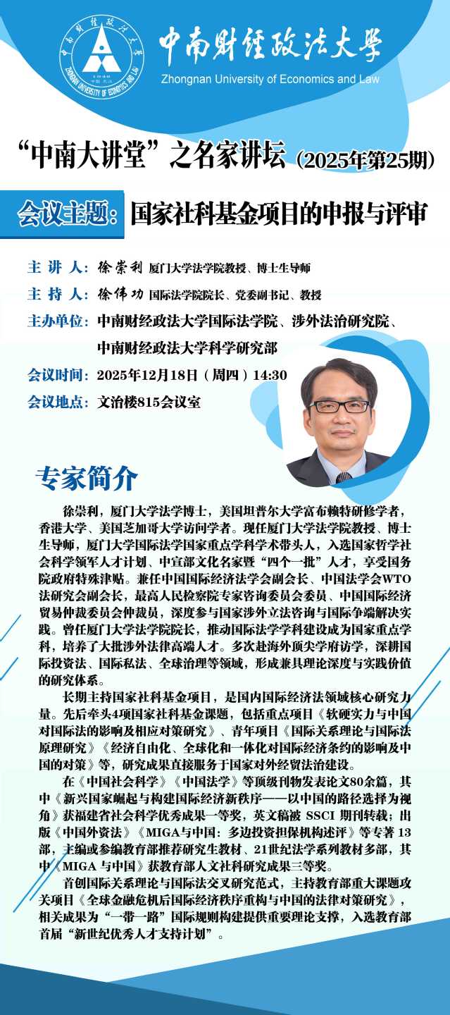 【活动预告】“中南大讲堂”之名家讲坛(2025年第25期)